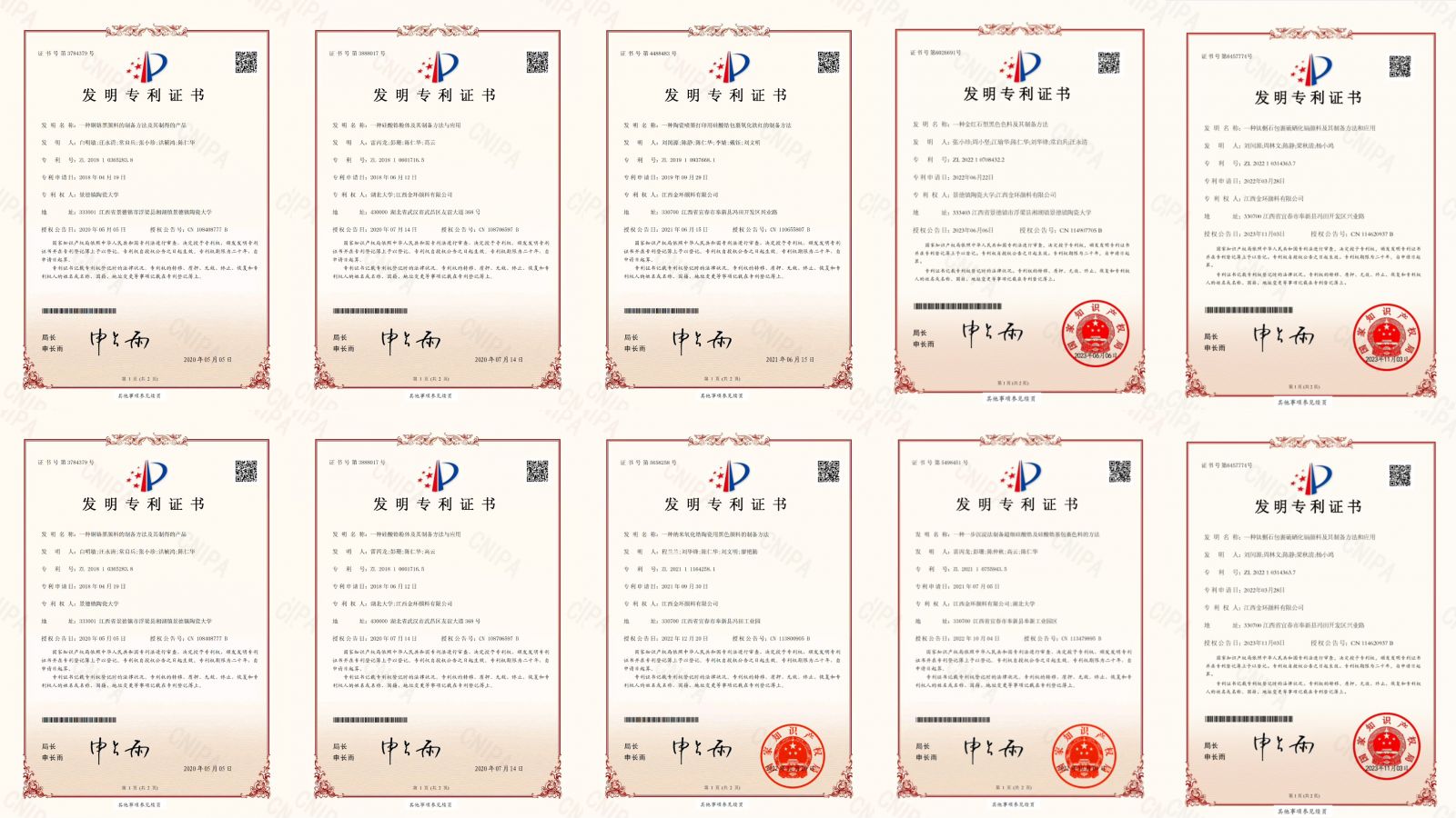 自1993年在湖南湘潭肇基,2010年整體搬遷至江西奉新以來(lái),公司先后獲批“國(guó)家高新技術(shù)企業(yè)”、“中國(guó)搪瓷無(wú)機(jī)顏料創(chuàng)新研發(fā)中心”、“江西省環(huán)保無(wú)機(jī)顏料工程技術(shù)研究中心”“江西省博士后創(chuàng)新實(shí)踐基地”“江西省節(jié)能減排示范基地”“江西省“專(zhuān)精特新”中小企業(yè)”、“景德鎮(zhèn)陶瓷大學(xué)實(shí)踐基地”等技術(shù)創(chuàng)新平臺(tái),擁有授權(quán)發(fā)明專(zhuān)利12項(xiàng),授權(quán)實(shí)用新型專(zhuān)利7項(xiàng)。