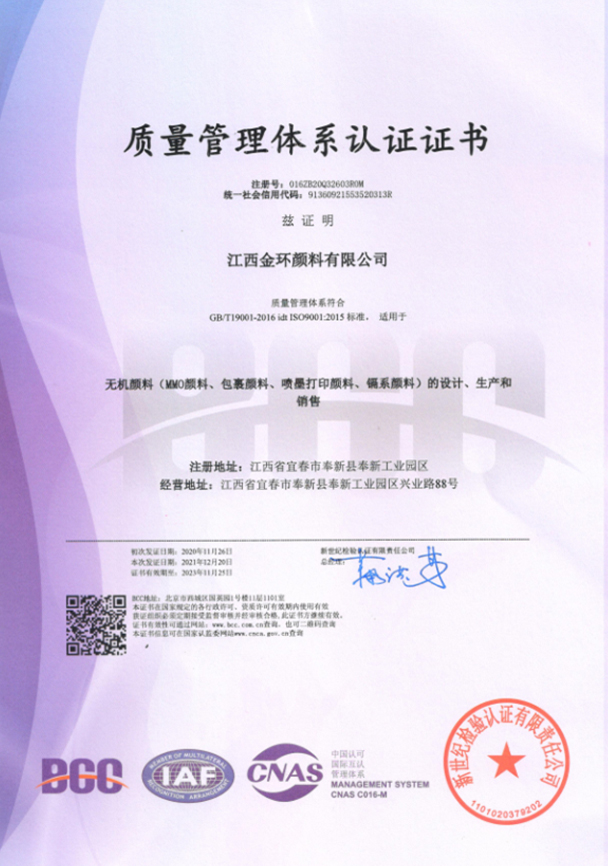 Jiangxi Province Environmental Protection inorganic pigment engineering technology research center